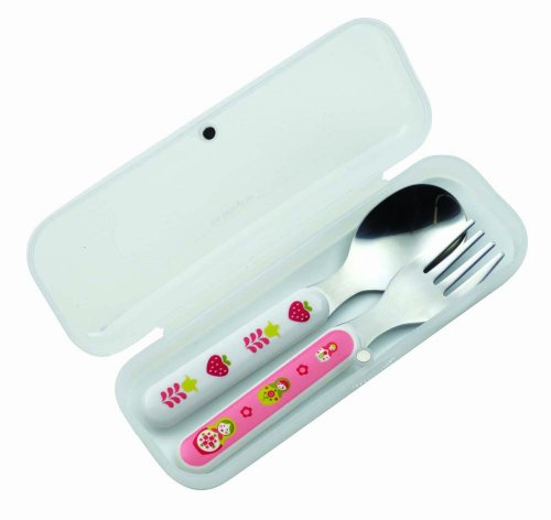 - Fork and spoon silverware set with matryoshka doll graphics in carrying case